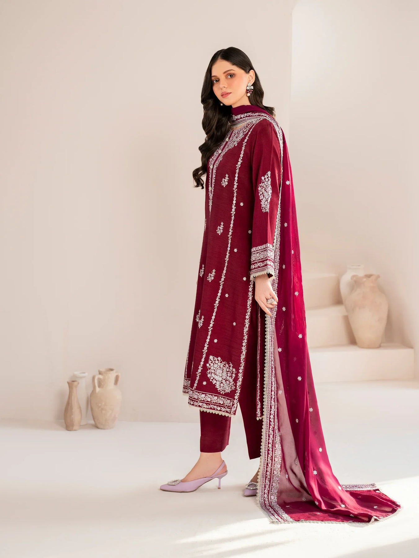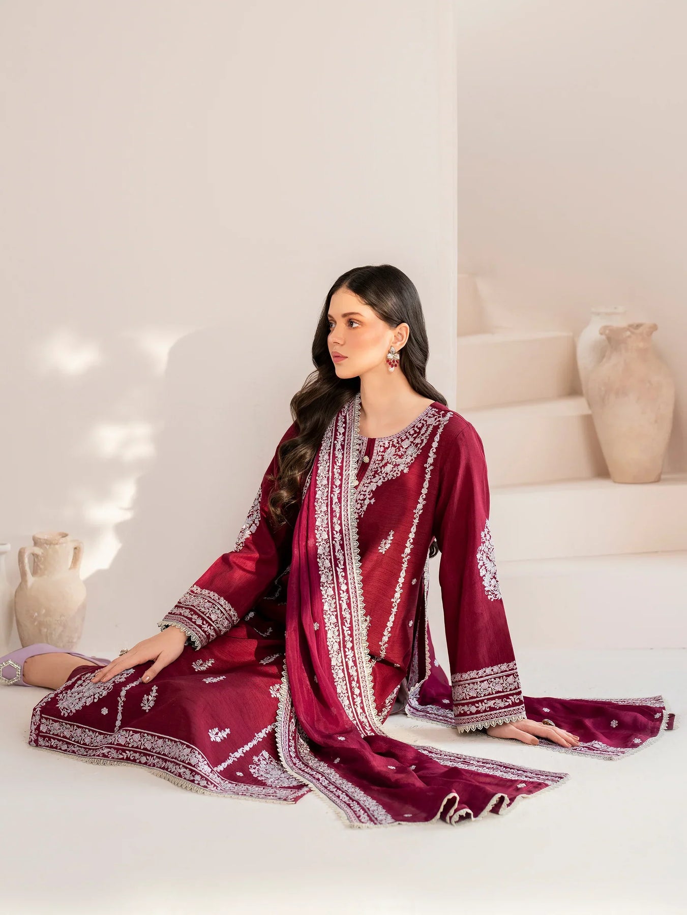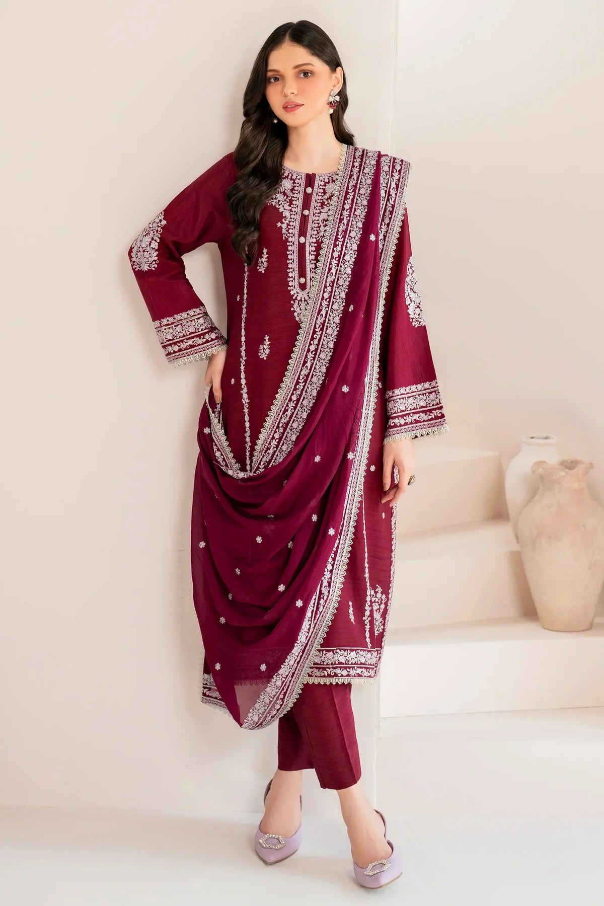 GARNET - 3PC LAWN EMBROIDERED SHIRT WITH CHIFFON EMBROIDERED DUPATTA AND TROUSER - HZG2099