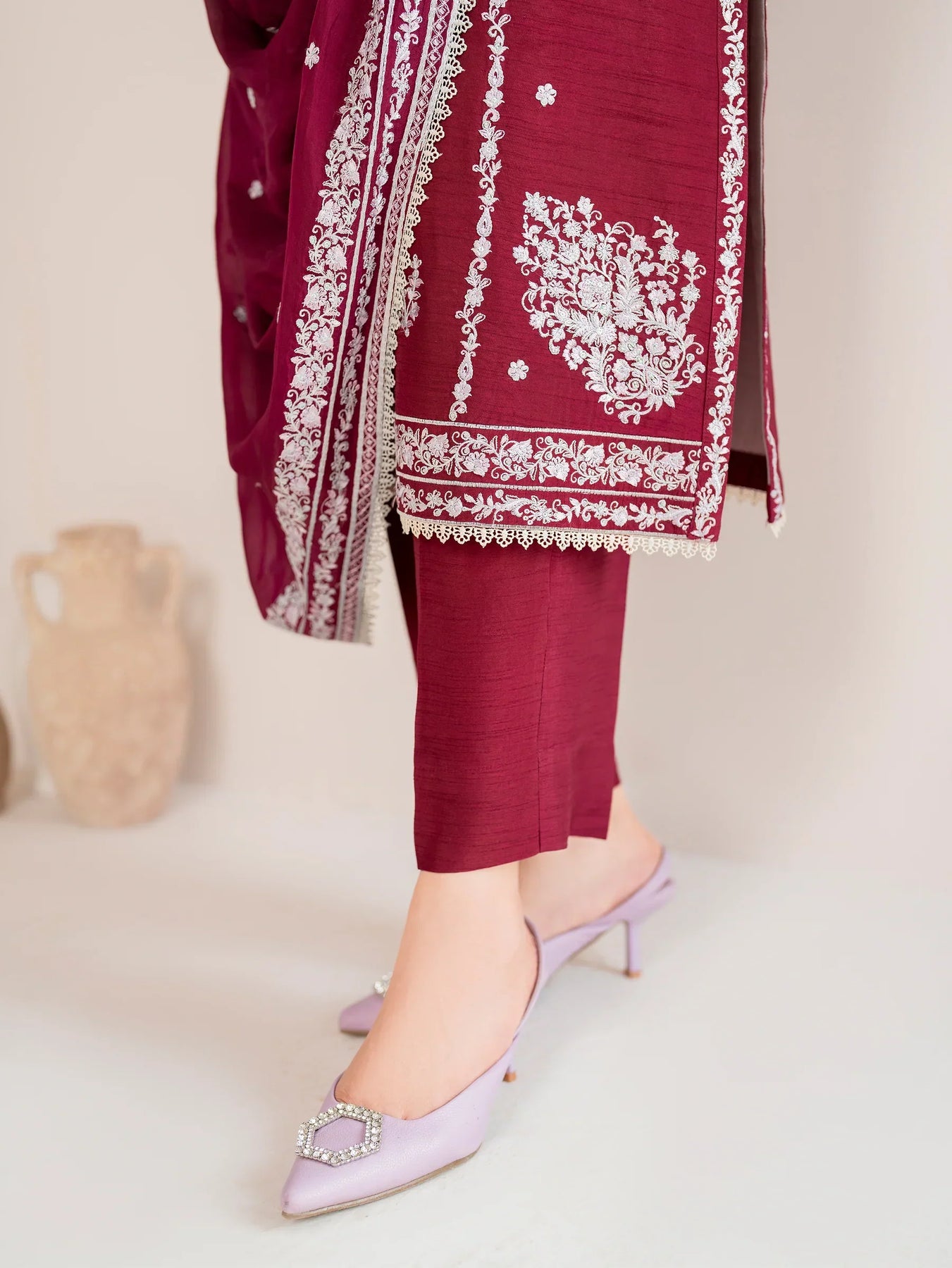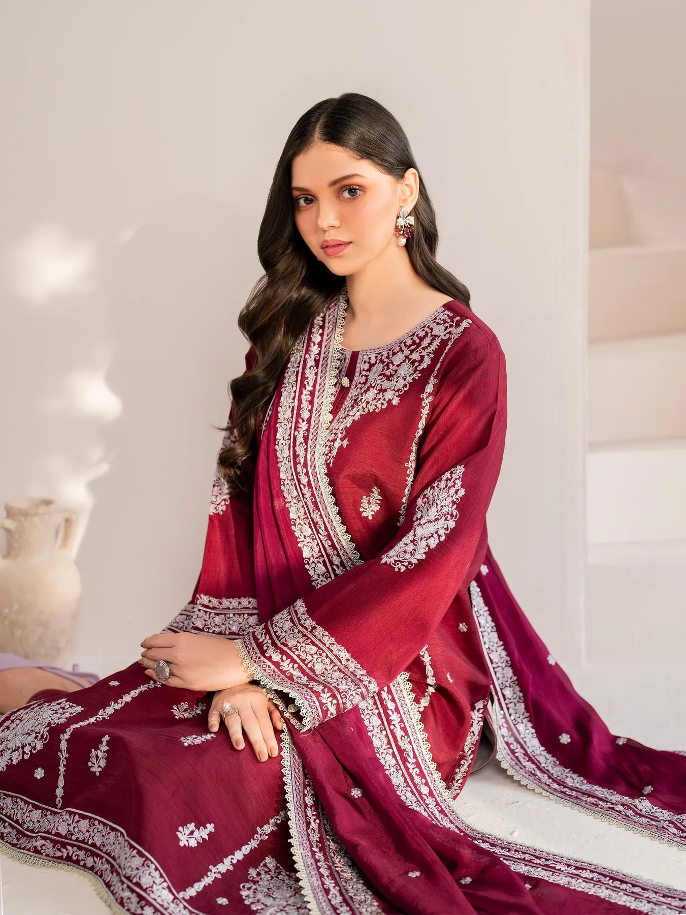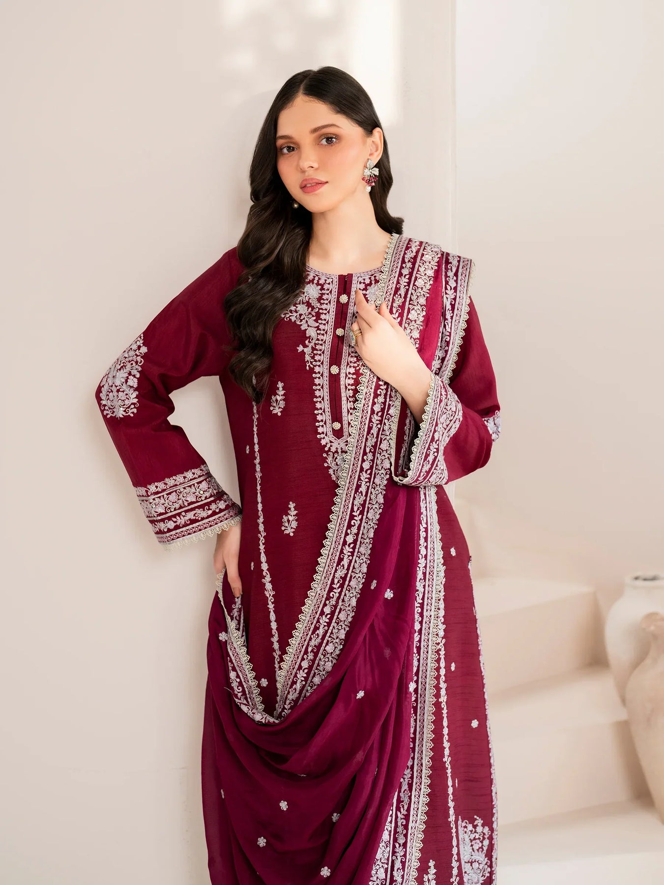 GARNET - 3PC LAWN EMBROIDERED SHIRT WITH CHIFFON EMBROIDERED DUPATTA AND TROUSER - HZG2099